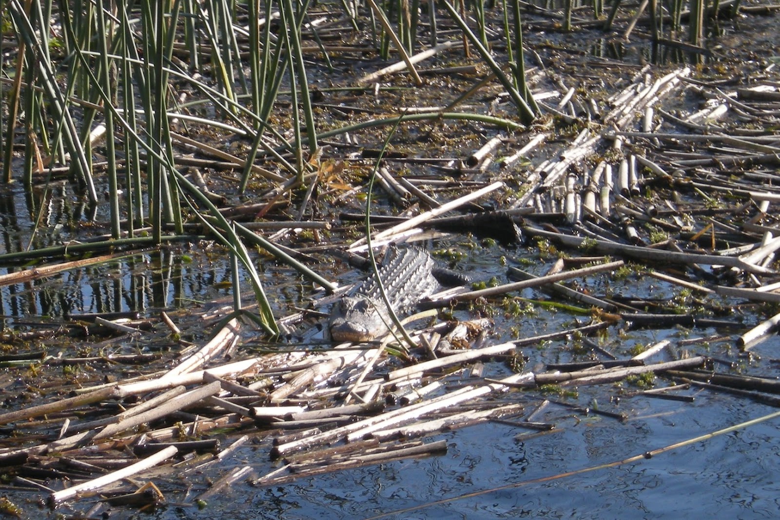 With time left to explore we took a look in the AAA book and decided to visit Wakulla Springs Lodge and State Park. What a wonderful surprise it turned out to be. We got there just in time to take a fabulous 40 minute boat ride on the Wakulla River. The ranger was full of information and we saw a remarkable variety of wildlife! The 14 mile river is the last remaining pristine river in Florida and in fed by a spring that maintains the temperature at 70° . It flows into the gulf. The spring is the largest and deepest spring in the U.S. They have a dive tower that I am sure the boys in our family would have loved. The underwater caves go back for hundreds of feet and are taller and wider than an 8 story building. We were amazed at the number of birds we saw up close: Ibis, Great White Egret, Osprey, Hooded Merganser, Bald Eagle, Wood Ducks, Great blue Heron, Double Crested Cormorants, and Anhinga with their wings spread out. Everywhere we looked was a beautiful bird. We saw ate least a dozen alligators from babies to the largest at 12 feet, several manatees including a calf and Suwannee Cooters (turtles) basking in the sun. It was truly one of the most amazing collections of wildlife we have ever seen in a natural setting! It seemed like a Disneyland "E" ticket ride! It was a nice trade off with the unattractive capitol building that we had decided not to see! Ed Ball owned the spring after 1934 and established a wildlife sanctuary closed to recreational boaters. The lodge he built is lovely. He designed boats to be used for excursions and had them built on the property keeping the design a secret. The boats are still used today.